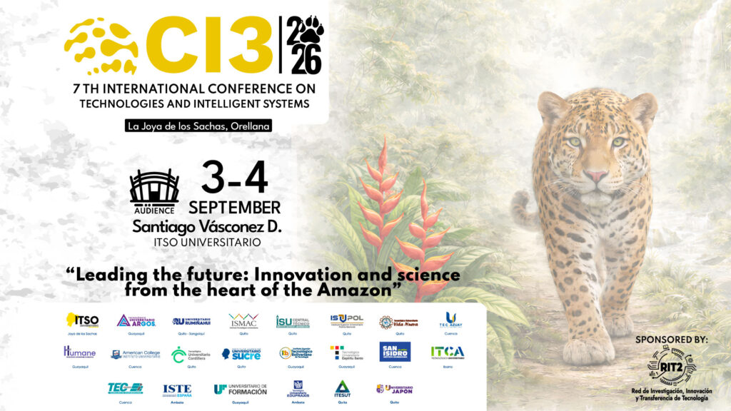 The 7th International Conference on Intelligent Technologies and Systems “Leading the future: Innovation and science from the heart of the Amazon” (CI3 2026) will be held on September 3 and 4, 2026, in La Joya de los Sachas, Orellana Province, Ecuador, at the facilities of the Instituto Superior Tecnológico Universitario Oriente (ITSO).